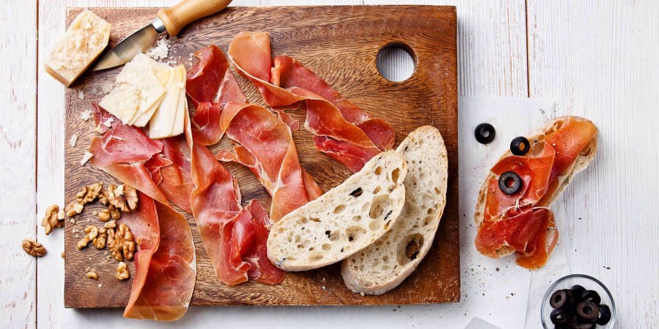 Прошутто— итальянская ветчина, приготовленная из окорока, натёртого солью. Прошутто мягче и сочнее своего родственника хамона, нарезается полупрозрачными тончайшими нежными кусочками, от янтарного до глубокого терракотового цвета. Совершенный вкус, чрезвычайная питательность и польза: итальянцы знают толк в гармоничной еде!